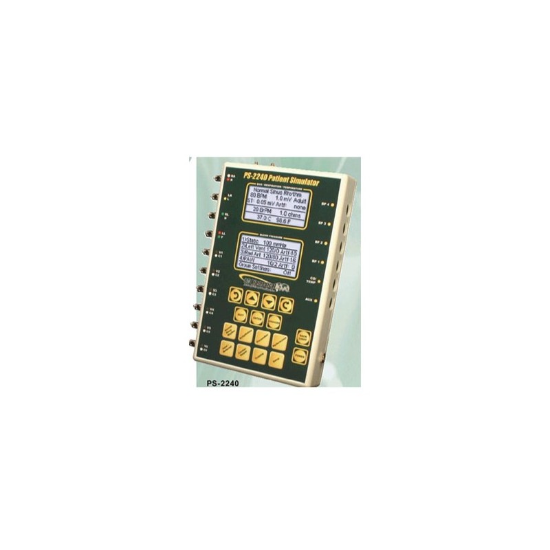 A série de Simuladores Multi-Parâmetros (ECG, 4 BPI, RESP, TEMP, 49 arritmias, etc) é a mais abrangente e fácil de usar do mercado. Estes novos simuladores portáteis são de utilização intuitiva, pois não necessitam de códigos adicionais.