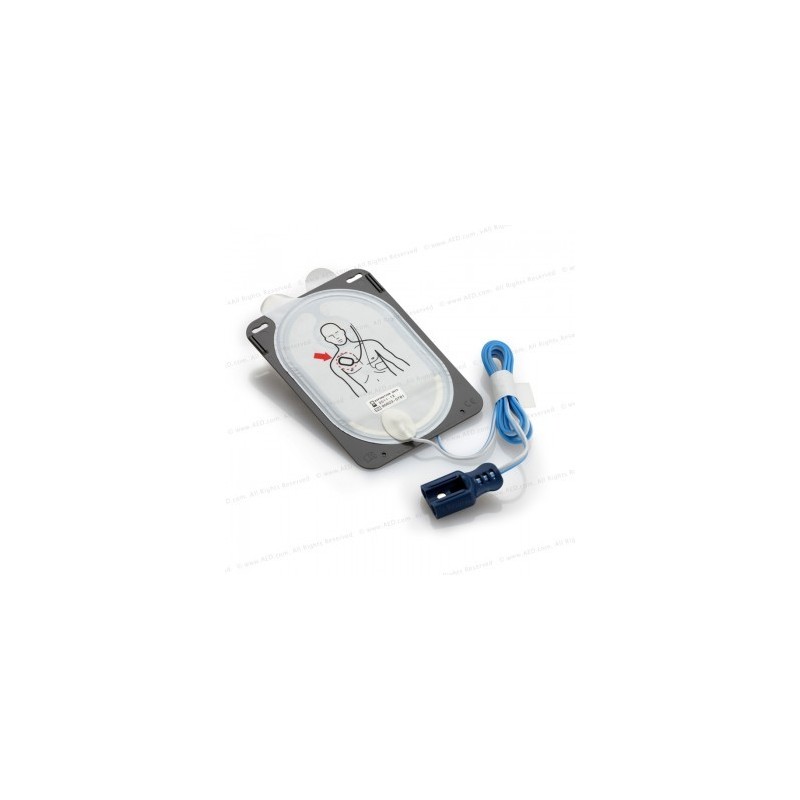 Economize tempo valioso em uma emergência com almofadas que podem ser usadas em adultos, crianças e bebês. Philips SMART Pads II para o AX FRX eliminar a despesa de ter de comprar diferentes conjuntos de almofadas para diferentes tipos de pacientes. Estas almofadas pré-conectadas são embaladas em um estojo de almofadas semi-rígido para proteção adicional e estão equipadas com um plug compatível com HeartStart para fácil transferência para desfibriladores Philips ALS e desfibriladores competitivos com adaptadores.