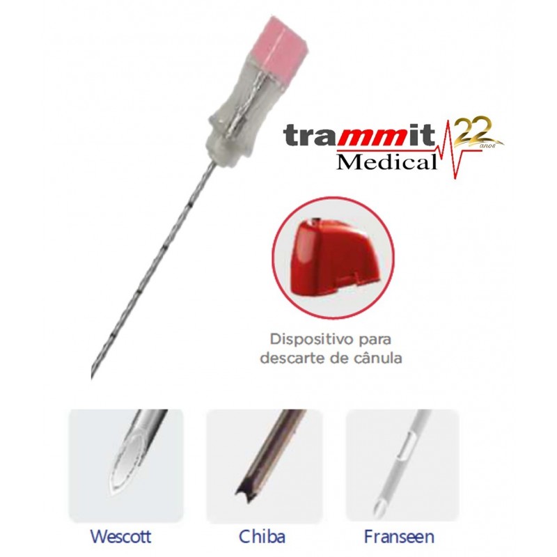 O mandril possui uma ranhura interna radiopaca, o que garante mais segurança para o paciente. Possui três modelos de pontas: Wescott, Chiba e Franseen. É utilizada para diversos procedimentos aspirativos e para infusão de drogas anestésicas profundas