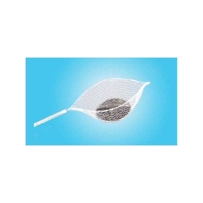 O laço em sua extremidade distal é fabricado também em aço inoxidável e possui uma rede em nylon que facilita a captação do corpo estranho. Sua empunhadura é de fácil manipulação, giratória e em ABS Lustran, que permite a rotação do laço