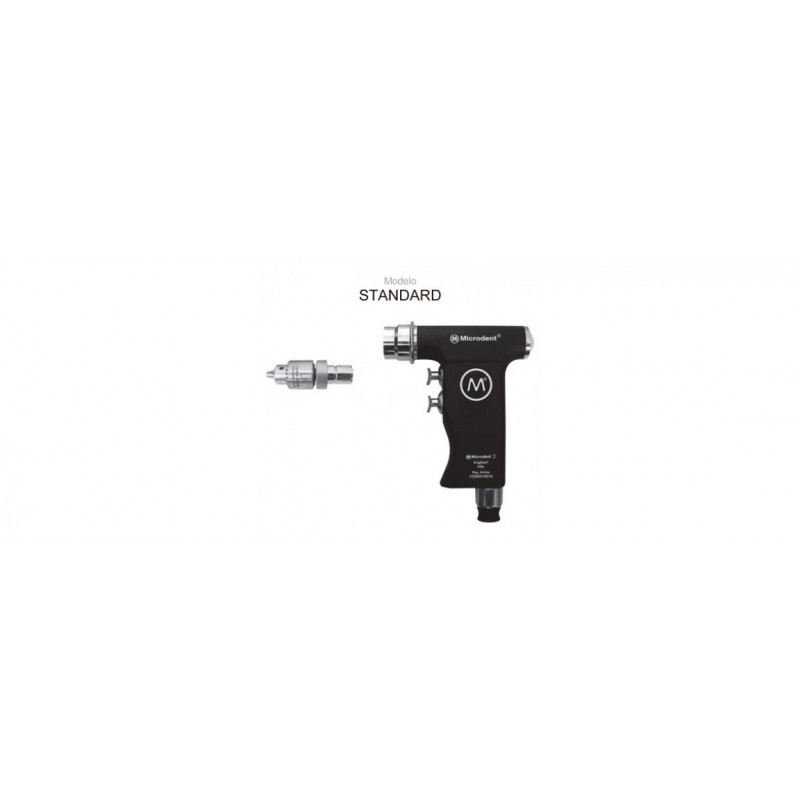 Desenvolvido para atender a evolução dos procedimentos cirúrgicos na realização de orifícios no tecido ósseo, proporcionando cirurgias mais seguras, rápidas e eficazes. Reflete um alto nível tecnológico em sua plataforma de operação, garantindo ao usuário uma redução de tempo nos diversos tipos de cirurgias ortopédicas ou que necessitem de processos de perfuração simples ou canulada. Permite a utilização de vários tipos de brocas ou trefinas e pode ser usado para introdução e extração de pinos, fios lisos ou com rosca através de ossos. Possibilita também o acople de raspas de ação giratória para preparo de cavidades ósseo-cartilaginosas esféricas. No Perfurador Ósseo Canulado Duplo o sentido de rotação horária é obtido através do acionamento do gatilho inferior e a reversão para o sentido de rotação anti-horária é feita com o acionamento dos dois gatilhos simultaneamente, proporcionando cirurgias mais seguras, rápidas e eficazes.